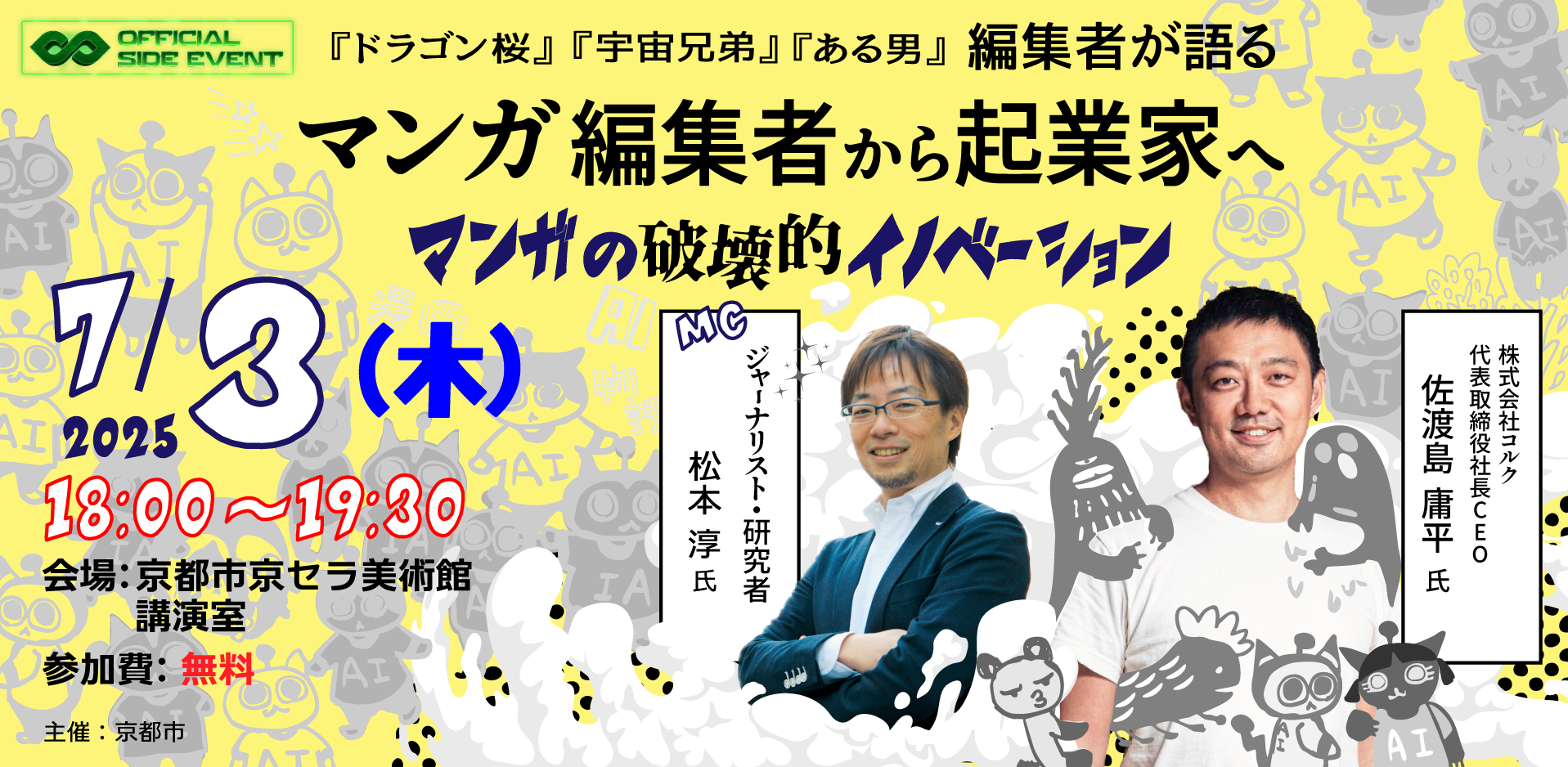 2025年7月3日、京都市京セラ美術館にて、IVSサイドイベントとしてトークセッション「マンガ編集者から起業家へ~マンガの破壊的イノベーション~」が開催されました。